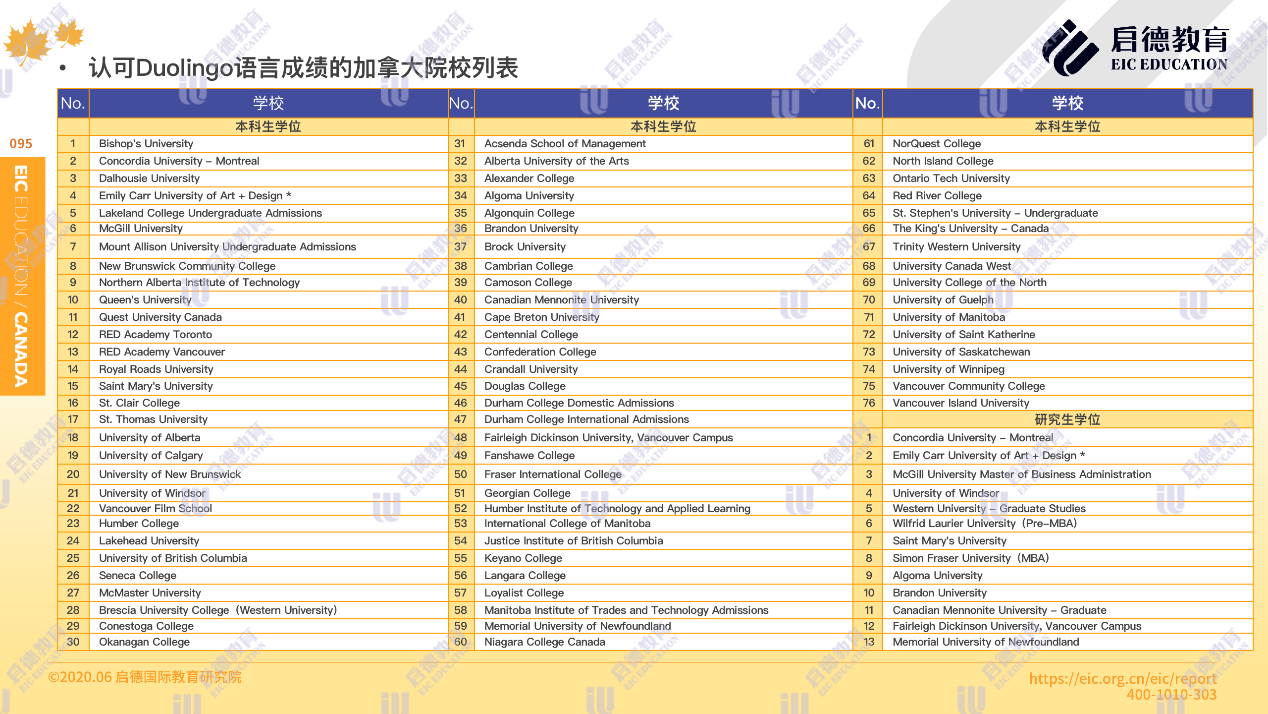 據(jù)了解,目前多鄰國 Duolingo English Test語言成績被加拿大高校的76個本科生學(xué)位、18個研究生學(xué)位,及20所中學(xué)所認(rèn)可。此外,加拿大學(xué)術(shù)英語測試 CAEL考試已于2019年1月在中國內(nèi)地開放考試,具有出分快(8天),聽說讀寫一次性完成,無須額外口語面試等特點,目前北上廣均設(shè)有考場。