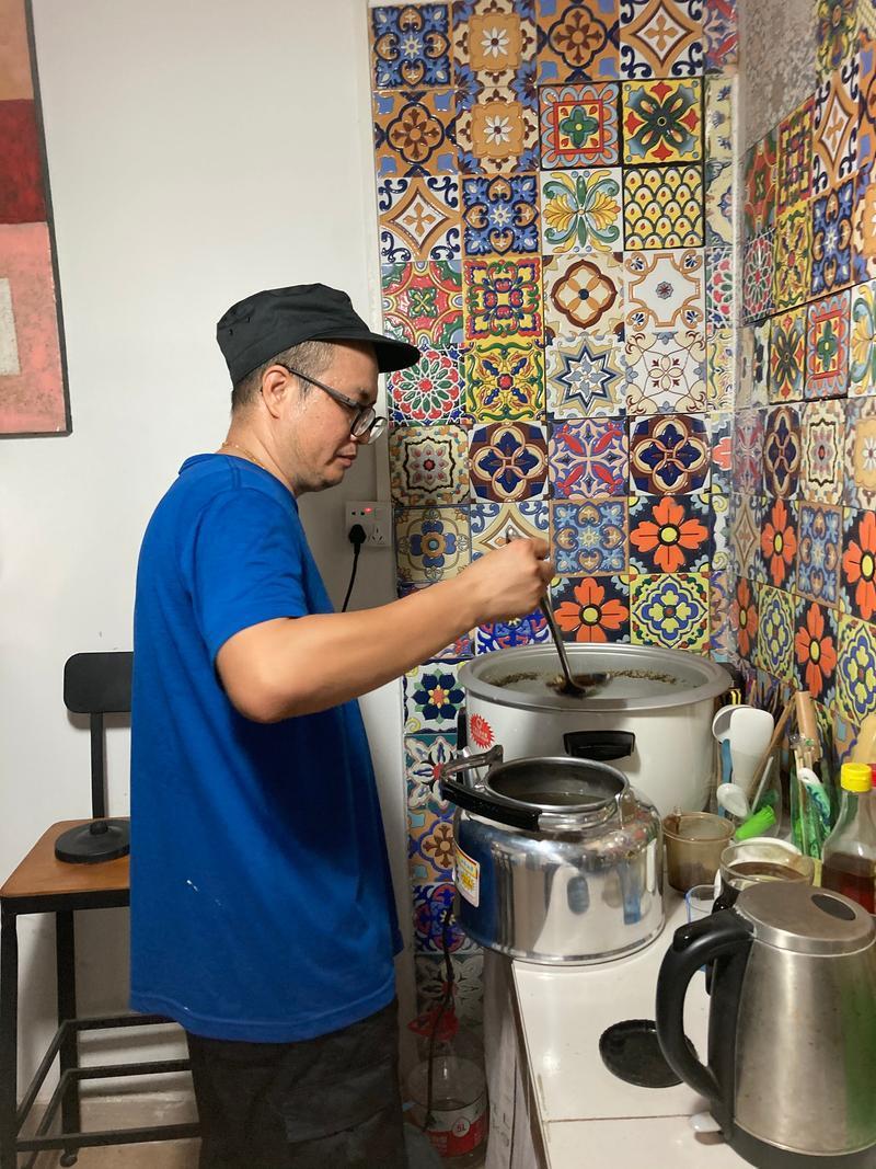 小林哥今年43歲,是上圍藝術(shù)村的原住居民,往年夏天他都會煲一些涼茶給家人及周圍的朋友們喝。新冠肺炎疫情期間,小林哥一直堅(jiān)守一線,這樣的抗疫經(jīng)歷讓他深感戶外一線人員的辛苦。
