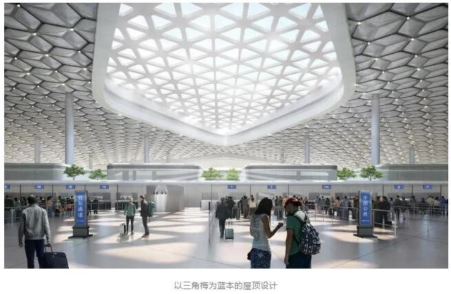 地面公園、主入口廣場以及綠化屋頂以開放、友好的姿態(tài)展現(xiàn)生態(tài)環(huán)保表達(dá)建筑的公共屬性。主入口處外立面向上,展露出內(nèi)部的玻璃幕墻,以開放的姿態(tài)迎接旅客的到來。引入“垂直疊放”設(shè)計(jì)策略,高效組織口岸出入境及公共交通換乘,整合聯(lián)系城市綠軸與福田口岸無縫連接,致力在區(qū)域核心打造一個(gè)開放、綠色與城市緊密聯(lián)系的公共空間。