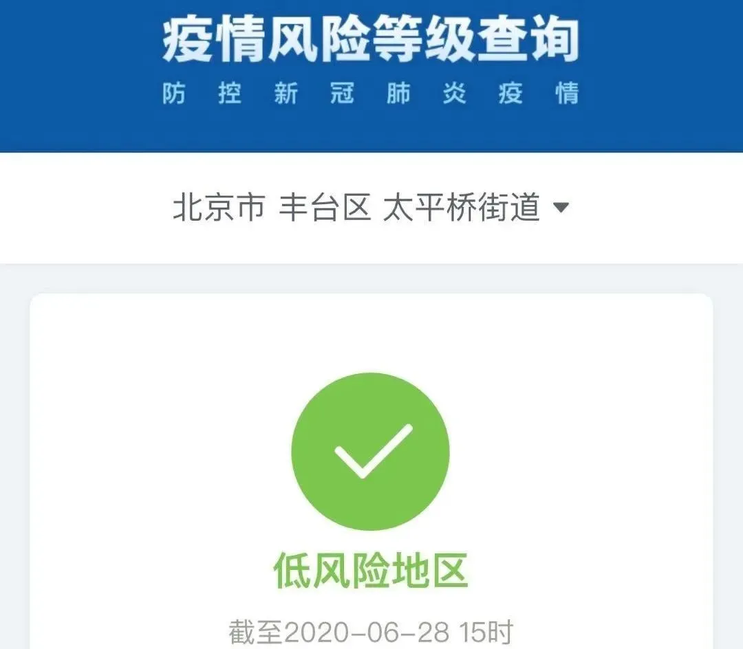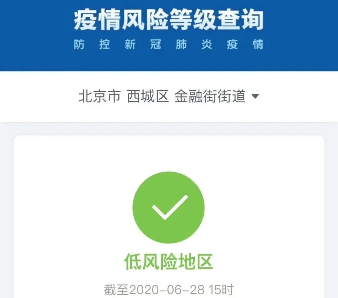 截至6月28日15時(shí),北京市西城區(qū)金融街街道、豐臺(tái)區(qū)太平橋街道由中風(fēng)險(xiǎn)地區(qū)變更為低風(fēng)險(xiǎn)地區(qū)。