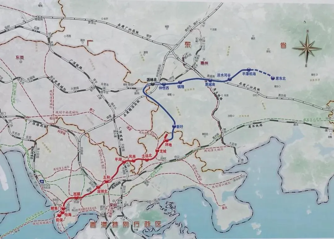 龍崗至大鵬支線:起自龍崗,經(jīng)坪山至大鵬新區(qū),線路與深惠城際、深大城際銜接。