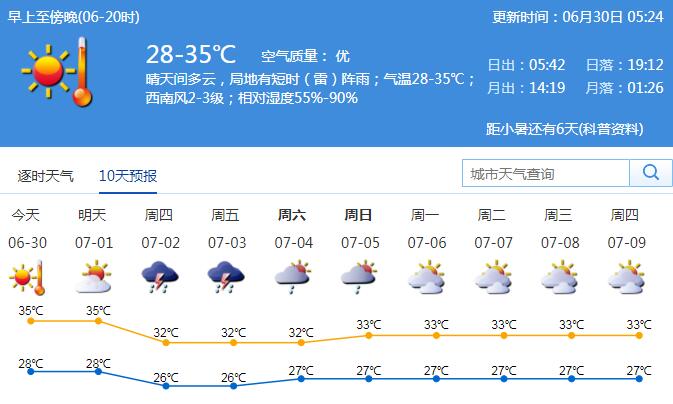 高溫模式還將持續(xù),有分散陣雨 戶外活動及時補充水分