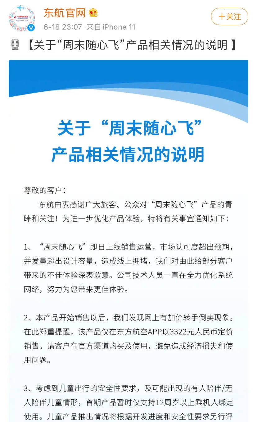 在官方微博,東航就“隨心飛”產(chǎn)品發(fā)表了一個(gè)說明,對(duì)用戶出現(xiàn)不好的體驗(yàn)致歉,并稱技術(shù)人員正在全力優(yōu)化系統(tǒng)網(wǎng)絡(luò),努力給用戶帶來好的體驗(yàn)。
