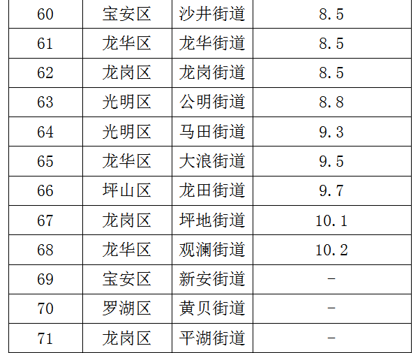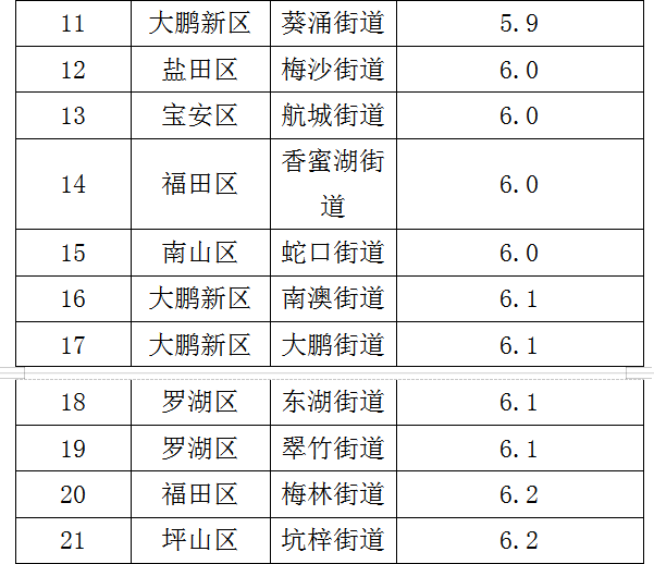 注:新安、黃貝、平湖、桂園、蓮塘及馬巒等街道由于儀器故障、軟件故障、停電等原因,有效數(shù)據(jù)不足。