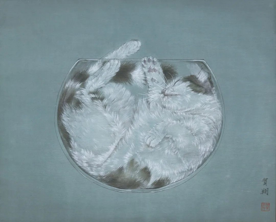 賀翔《我是貓》之一,絹本設(shè)色,40×50cm,2017年
