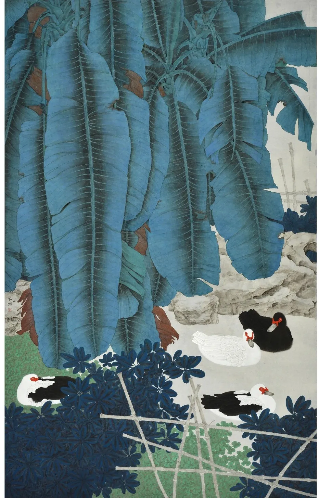 朱娟《中庭日淡芭蕉卷》,紙本設(shè)色,127×210cm,2019年