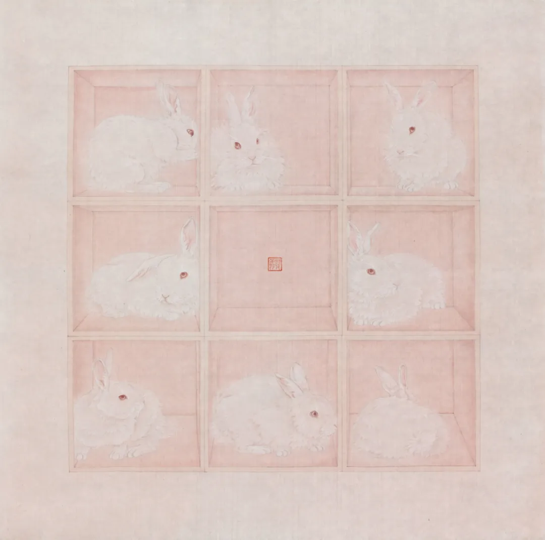 賀翔《rabbit系列 no.1》,絹本設(shè)色,40×30cm,2018年