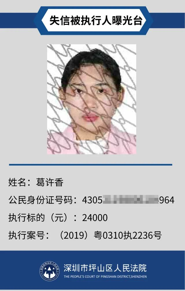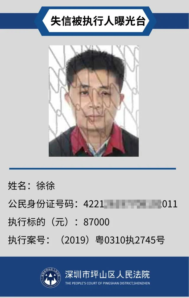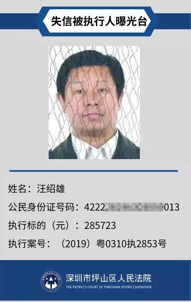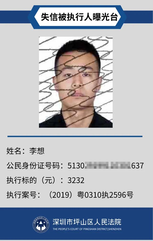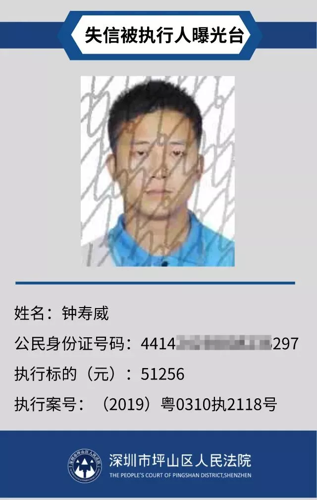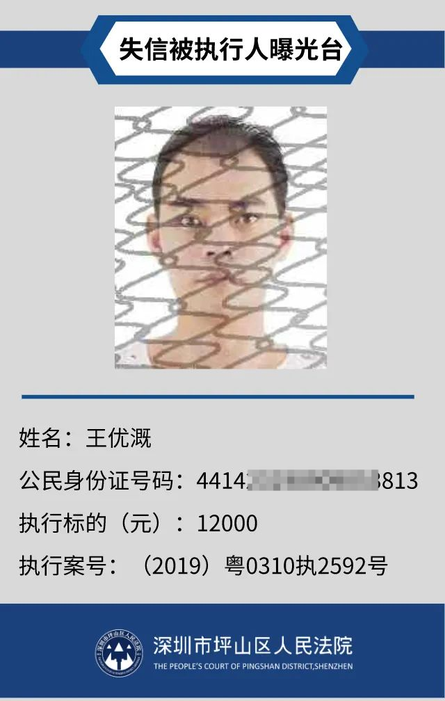 為督促被執(zhí)行人自覺履行生效法律文書確定的義務(wù),推進社會誠信體系建設(shè),深圳市坪山區(qū)人民法院根據(jù)《中華人民共和國民事訴訟法》第二百五十五條、《最高人民法院公布失信被執(zhí)行人名單信息若干規(guī)定》第一條和第七條之規(guī)定,現(xiàn)對31名失信被執(zhí)行人予以公布。名單信息根據(jù)案件結(jié)案情況及時更新,歡迎舉報失信被執(zhí)行人行蹤及財產(chǎn)線索,相關(guān)信息核實請聯(lián)系深圳市坪山區(qū)人民法院執(zhí)行局。