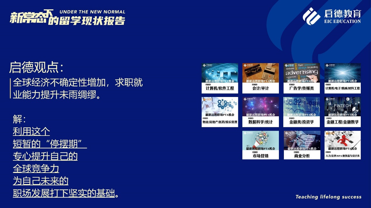 啟德留學(xué)美研項(xiàng)目總監(jiān)金鑫建議,對(duì)于正在準(zhǔn)備留學(xué)申請(qǐng)、求職就業(yè)的同學(xué)來(lái)說(shuō),在密切關(guān)注相關(guān)國(guó)家與院校政策的同時(shí),不妨利用這段時(shí)間參加線上科研項(xiàng)目,或是參加遠(yuǎn)程實(shí)習(xí)及遠(yuǎn)程 PTA ( Part-Time Assistant )項(xiàng)目,豐富學(xué)術(shù)或職場(chǎng)經(jīng)歷,為留學(xué)申請(qǐng)和求職就業(yè)積累背景、提高競(jìng)爭(zhēng)力。