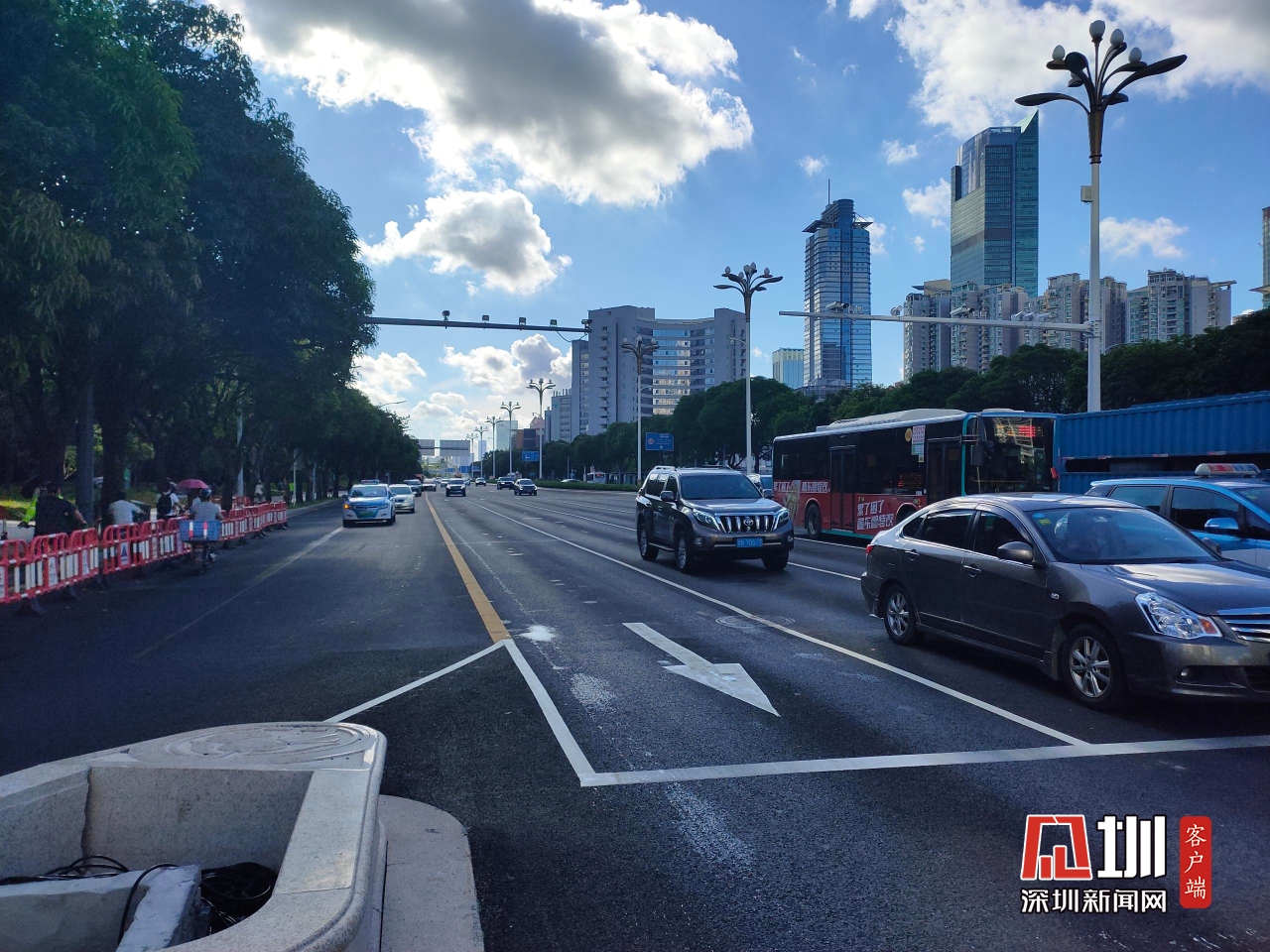 【紅荔路】上午8時(shí),記者在紅荔路和新洲路交匯處拍攝實(shí)時(shí)路況。