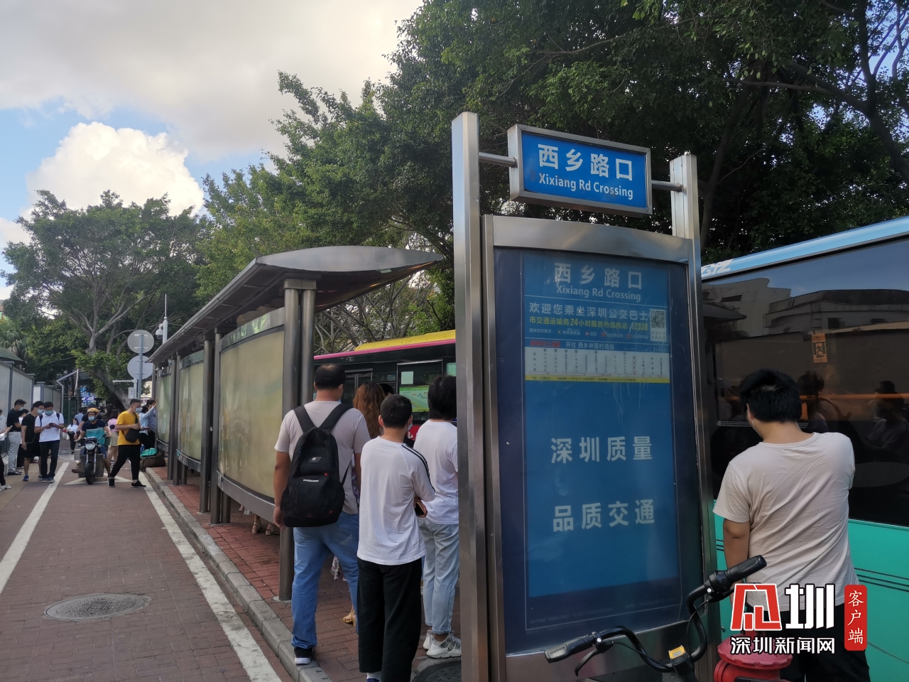 【廣深公路】上午8時(shí)19分,記者位于西鄉(xiāng)路口公交站臺(tái)的實(shí)時(shí)路況,該站臺(tái)有多路公交來(lái)往市區(qū)。
