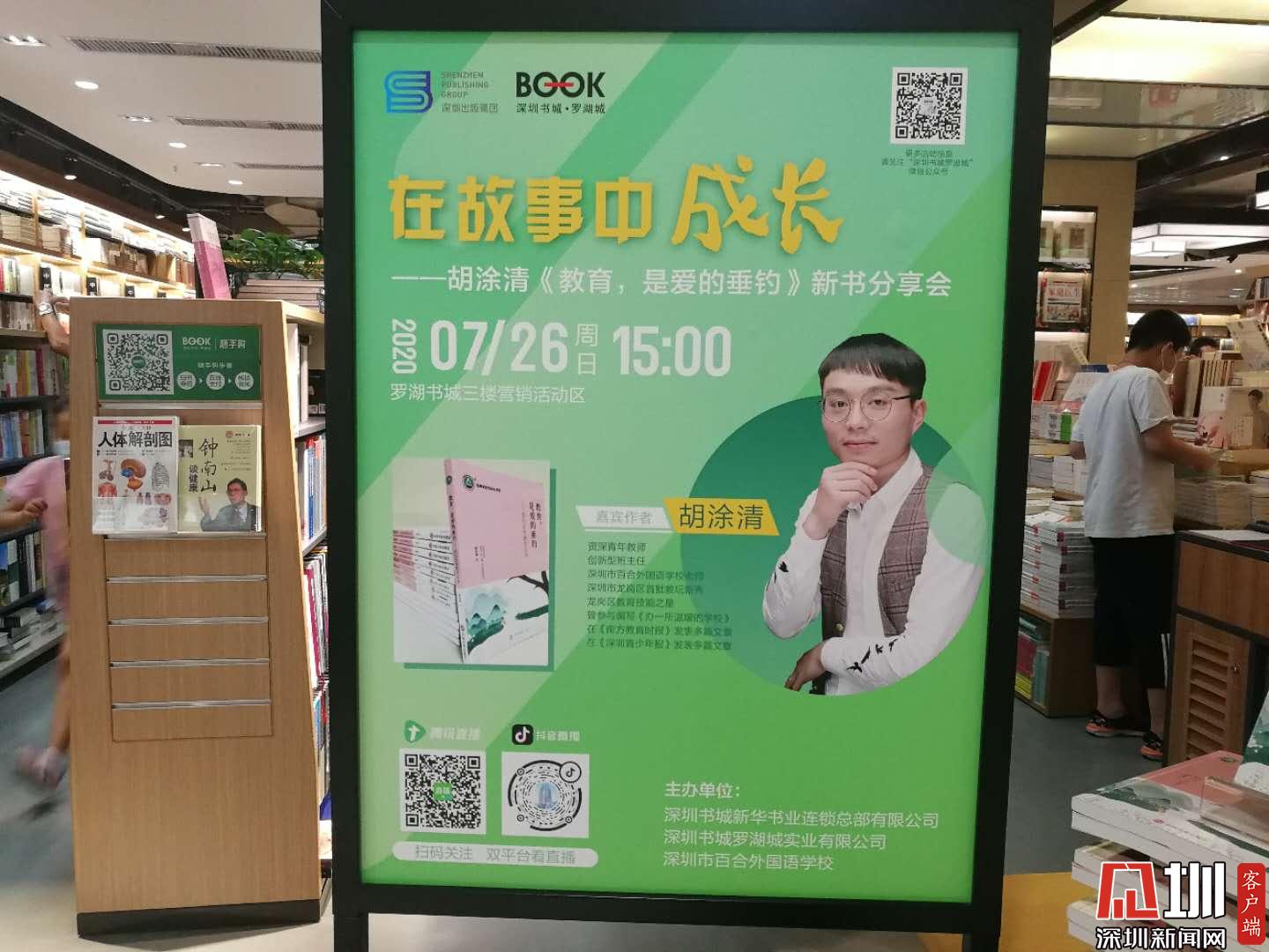 見圳客戶端·深圳新聞網(wǎng)2020年7月27日訊(記者 張玲 實(shí)習(xí)生 王舒蕾)在教育工作者的眼中,教育是什么樣的?7月26日下午3點(diǎn),深圳市百合外國語學(xué)校胡涂清老師攜新書《教育,是愛的垂釣》做客羅湖書城,與讀者朋友們分享了任教經(jīng)歷的暖心故事和獨(dú)到見解。
