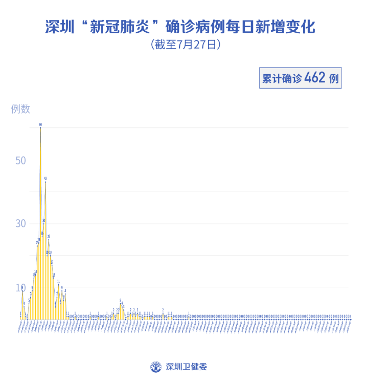 截至7月27日24時,深圳累計報告新冠肺炎病例462例。