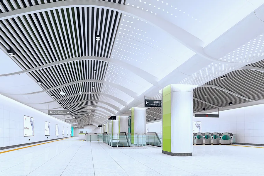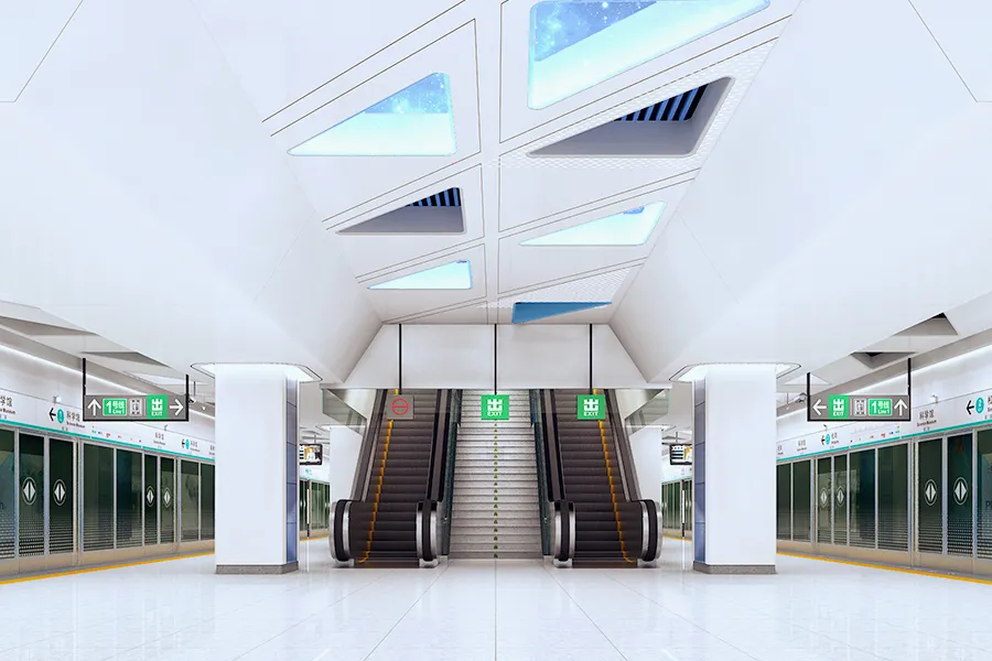 冬瓜嶺站地處福田區(qū)天威視訊附近,車站沿規(guī)劃福田彩田路南北向布置,車站為地下二層一島一側(cè)式站臺鋼筋混凝土箱形框架結(jié)構(gòu)。車站共設(shè)出入口7個(gè):A、B、C、D、3個(gè)物業(yè)出入口(E、F、G口)。