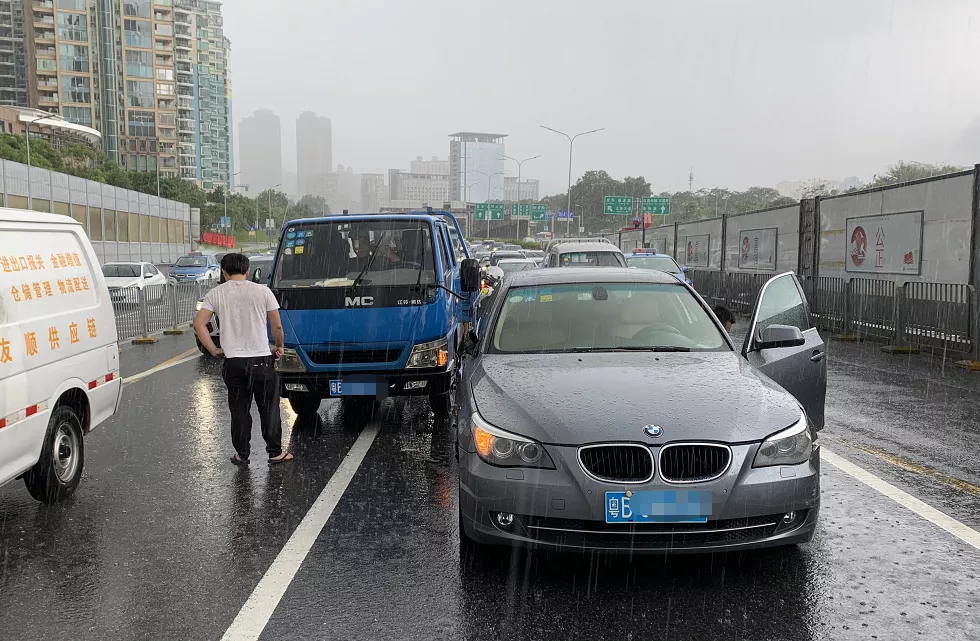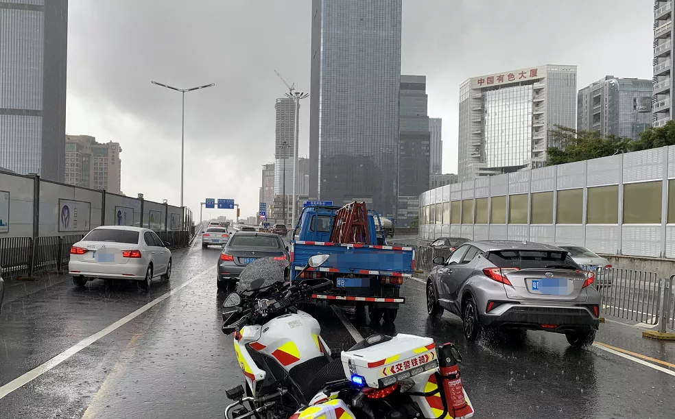 深圳交警立即引導(dǎo)兩車轉(zhuǎn)移到不影響交通路段,同時(shí)提醒過(guò)往車輛注意避讓。目前,涉事司機(jī)已報(bào)保險(xiǎn)處理。