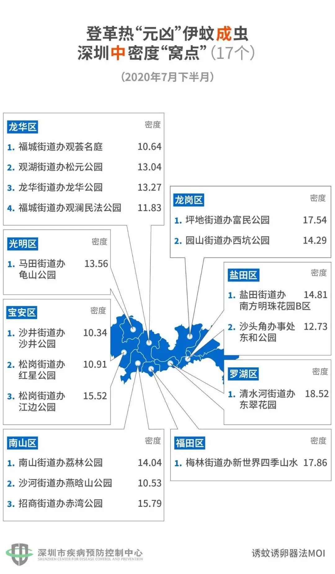 下面的伊蚊分布圖就是登革熱風險地圖。中密度說明有一定的登革熱傳播風險,高密度則意味著,一旦有外部病例輸入,就可能在周邊片區(qū)引發(fā)登革熱流行。