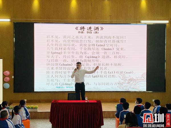 深圳新聞網(wǎng)訊(深圳新聞網(wǎng)記者 彭桂紅 通訊員 梁文雅)為進(jìn)一步弘揚(yáng)中華優(yōu)秀傳統(tǒng)文化,近日,深圳市錦田小學(xué)特邀青年文化學(xué)者、深圳市百姓學(xué)習(xí)之星、深圳市公益閱讀推廣人、深圳市首屆家園文化文學(xué)會(huì)會(huì)長(zhǎng)晉玉東為廣大師生開展了一場(chǎng)別開生面的“中國(guó)古典詩詞朗誦藝術(shù)鑒賞——兼談如何朗誦好一首詩”公益文化講座。羅湖區(qū)錦田小學(xué)德弘校區(qū)副校長(zhǎng)劉向陽、羅湖區(qū)錦田小學(xué)德弘校區(qū)主任張俊暉、羅湖區(qū)未來學(xué)校主任謝淑紅、德弘二年級(jí)家委代表以及語文科組老師,一同參加。活動(dòng)由班主任梁文雅和學(xué)生劉沛東、張家琪共同主持,近200名學(xué)生參加了講座活動(dòng)。整場(chǎng)講座師生熱情高漲,主講嘉賓深入淺出、娓娓道來,參與學(xué)生思維活躍、表現(xiàn)積極,帶動(dòng)校園形成了學(xué)習(xí)詩詞文化的良好氛圍。