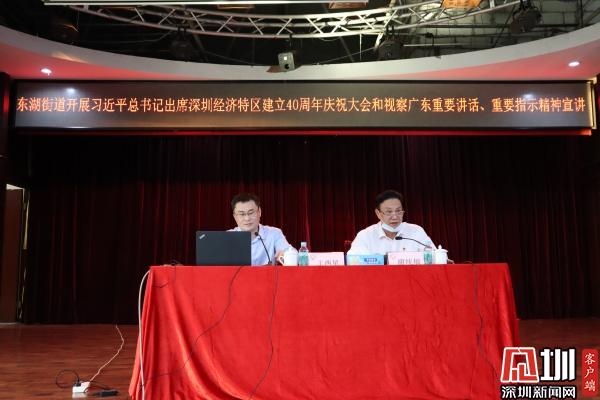 見圳客戶端·深圳新聞網(wǎng)11月26日訊(記者 劉晨 通訊員 魏官明 陳惠冰)11月26日下午,深圳市羅湖區(qū)東湖街道舉行習(xí)近平總書記出席深圳經(jīng)濟(jì)特區(qū)建立40周年慶祝大會(huì)和視察廣東重要講話、重要指示精神宣講報(bào)告會(huì),活動(dòng)特邀羅湖區(qū)委宣講團(tuán)成員、區(qū)發(fā)展研究中心黨組書記、主任王西星作主題宣講。 街道黨政領(lǐng)導(dǎo),街道各辦、中心業(yè)務(wù)負(fù)責(zé)人,各社區(qū)黨委書記、副書記,股份公司董事長(zhǎng),街道機(jī)關(guān)各黨支部及各社區(qū)黨建組織員、黨員共100余人參加了宣講活動(dòng)?;顒?dòng)由街道黨工委副書記、人大工委主任謝統(tǒng)敏主持。