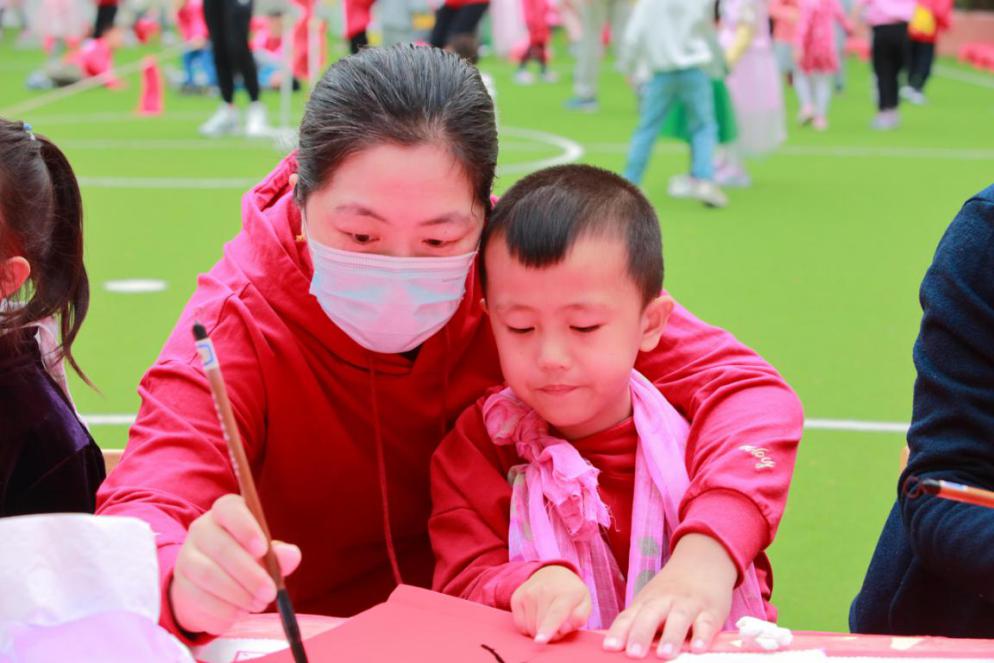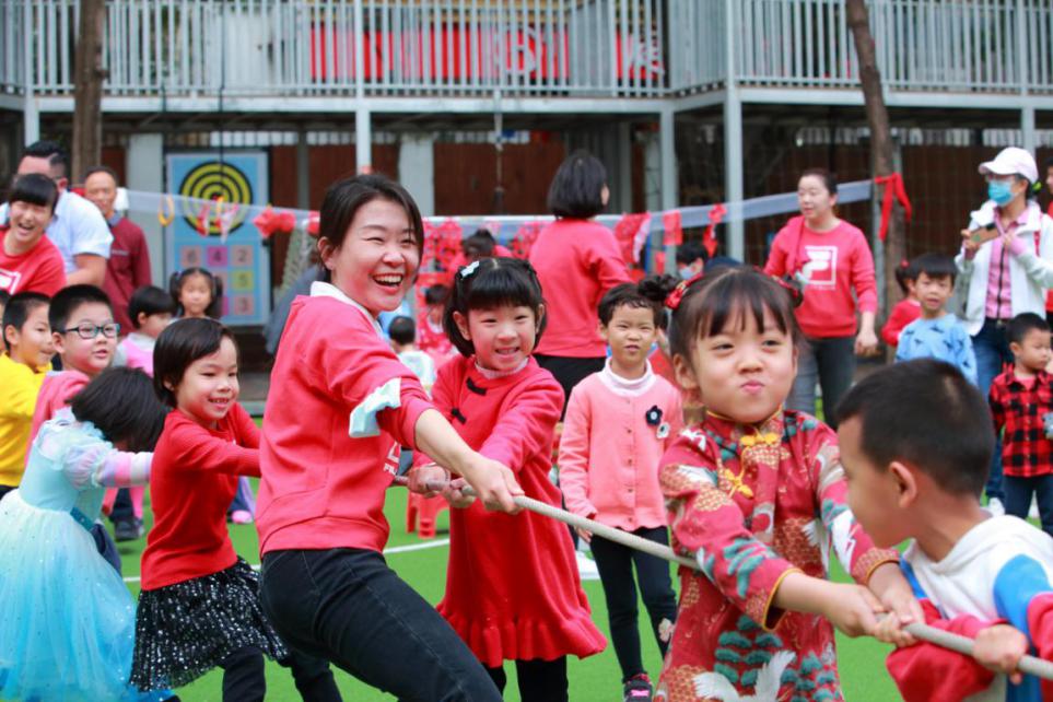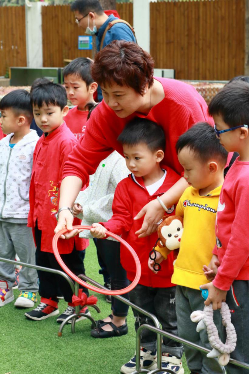 “加油!加油!”家長與孩子一起參加的拔河比賽讓全場氣氛沸騰,套圈、貼鼻子等活動,更是讓大人們體驗了一把兒時的歡樂。孩子們身系紅紅的綢帶、揮舞著漂亮的手絹,伴隨鑼鼓、嗩吶、镲奏出的動感曲調扭著秧歌,更是將現(xiàn)場氛圍推向了高潮。