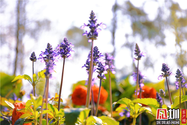 繁花似錦,花香滿園,而紫色的大花飛燕草在陽(yáng)光下最為亮眼。