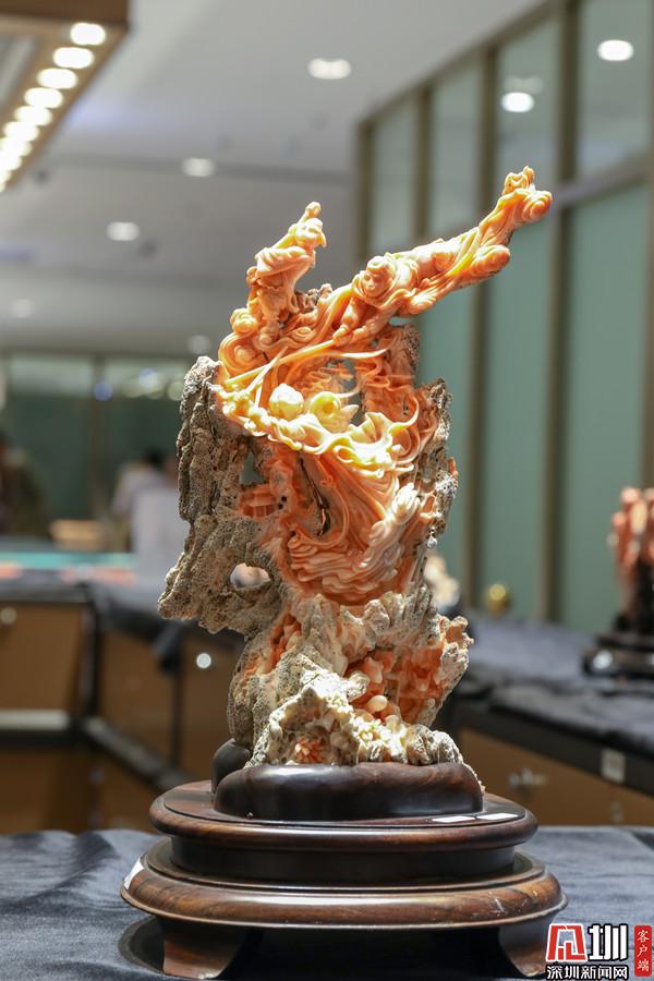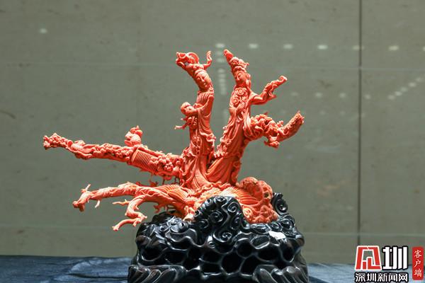 “現(xiàn)場許多珍稀珊瑚藝術(shù)品都是為了本次展會(huì)專程從臺(tái)灣博物館調(diào)來的,是博物館典藏級(jí)別的藝術(shù)品。現(xiàn)場看到的幾株原生態(tài)的寶石珊瑚樹,都是千年級(jí)別的,非常珍貴。寶石珊瑚生長在深海一百多公尺之下的火山巖環(huán)境中,生長非常緩慢。十年的時(shí)間才能長1厘米。”展會(huì)協(xié)辦方工作人員說道。