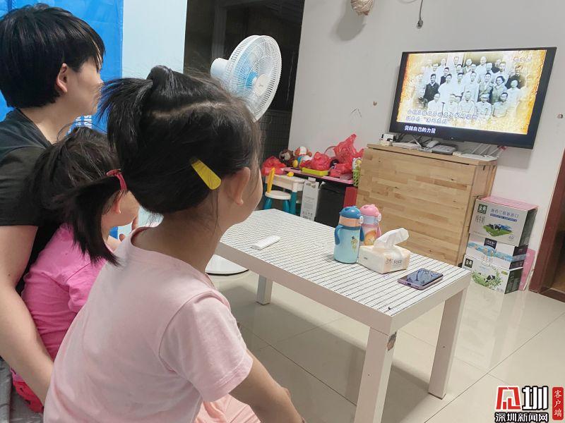 中醫(yī)院職工在家與孩子共同觀看紀錄片。