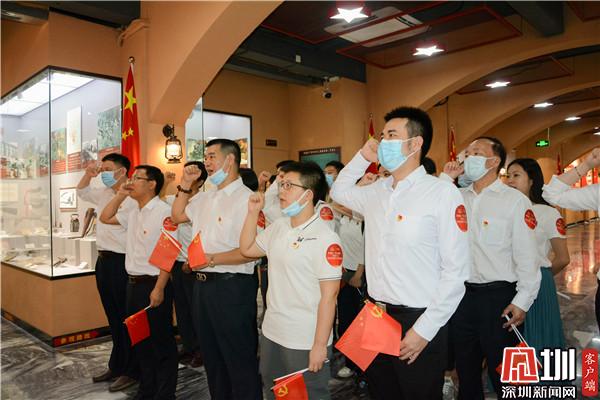 參觀活動結束后,全體成員進行了重溫入黨誓詞環(huán)節(jié)。在鮮紅的黨旗下,黨員們舉起右拳,在羅湖區(qū)委宣傳部二級調研員李文威的帶領下莊嚴宣誓,大家仿佛又看到了自己第一次站在莊嚴的黨旗下宣誓的樣子:“我志愿加入中國共產(chǎn)黨,擁護黨的綱領,遵守黨的章程……”一聲聲鏗鏘有力的入黨誓詞在博物館中回響。