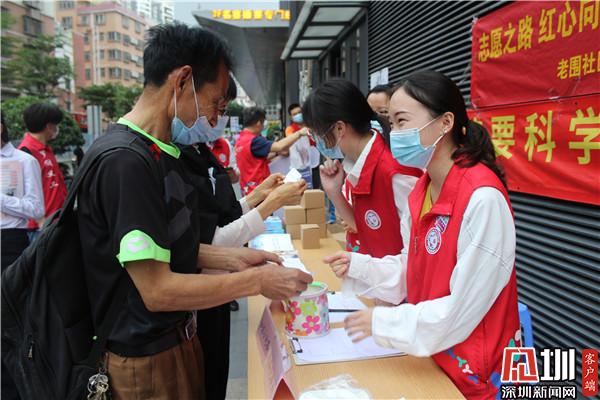在現(xiàn)場服務(wù)的義工中,林哲妮是其中一員,她剛從外地旅游回來,放下行李就直接到了宣傳現(xiàn)場。林哲妮在這個社區(qū)生活多年,認識的人很多,看到她就說:“又出來做義工了?”并自覺接過她手中的宣傳資料。在旁邊樓宇上班的陳曉甜女士就受了林哲妮的影響,也表示可以就近做義工,還幫兩個同事也報了名,并當場掃社區(qū)志愿者群,加入志愿者的行列。