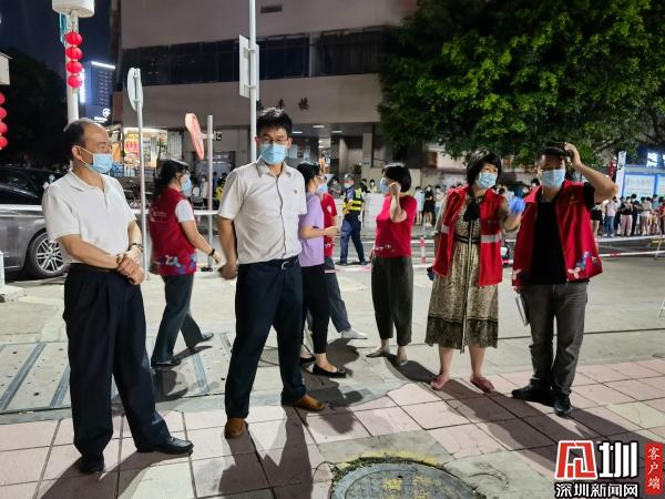 見圳客戶端·深圳新聞網(wǎng)2021年5月27日訊(記者 劉晨 通訊員 魏官明 陳惠冰)5月21日以來,深圳鹽田區(qū)、龍崗區(qū)相繼排查發(fā)現(xiàn)新冠肺炎無癥狀感染者,為堅決遏制疫情擴散蔓延,全力守護人民群眾的生命健康安全。羅湖區(qū)東湖街道按照市委市政府、區(qū)委區(qū)政府的統(tǒng)一部署,結(jié)合疫情防控形勢新變化,快速反應(yīng)、周密部署,5月26日下午,火速整合各部門、各社區(qū)近400名工作人員組成6支防疫突擊隊伍,街道黨工委書記程時菊,黨工委副書記劉慧堅、謝統(tǒng)敏、沈文俊,黨工委委員方海峰,二級調(diào)研員張翠紅分別擔(dān)任6支隊伍的督導(dǎo)長,連夜帶領(lǐng)突擊隊員們奔赴各相關(guān)社區(qū)開展核酸檢測工作。
