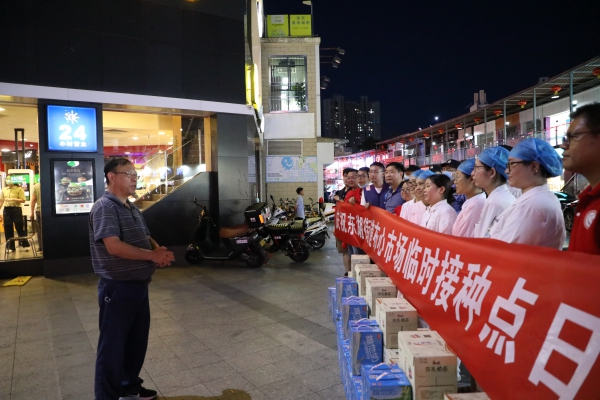 “大家辛苦了,感謝大家的辛勤付出!”在布心市場接種點,程時菊首先向全體工作人員致以誠摯的感謝,并叮囑他們要注意勞逸結合,做好自身防護。他強調全體工作人員面對艱苦的工作環(huán)境,沒有絲毫退縮,努力克服種種困難,始終以飽滿的熱情、昂揚的斗志,堅守崗位、加班加點、辛勤工作,每天圓滿完成了新冠疫苗接種清零任務。目前深圳疫情防控形勢嚴峻,希望大家繼續(xù)發(fā)揚攻堅克難、甘于奉獻的精神,全力加快新冠疫苗接種速度,為人民群眾的生命健康筑起堅實屏障。