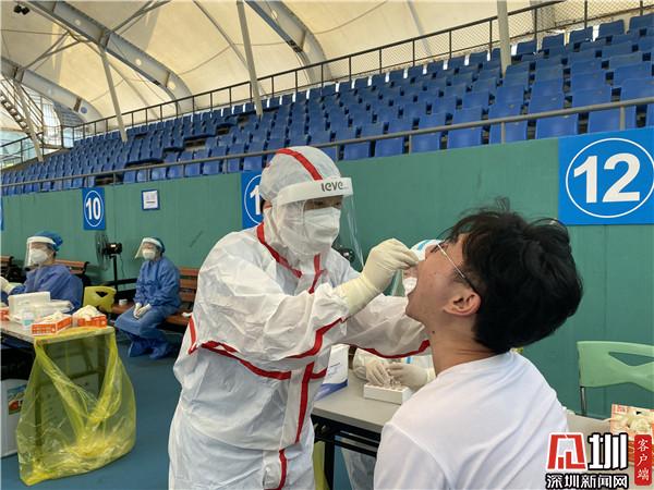 “根據(jù)當(dāng)前疫情防控工作要求,結(jié)合羅湖區(qū)實(shí)際情況,我們?cè)?8日啟用去體育館這個(gè)臨時(shí)采樣點(diǎn),現(xiàn)場(chǎng)我們可以看到整個(gè)采樣工作是很有秩序的,因?yàn)槲覀冊(cè)诿總€(gè)時(shí)間段安排不同的人群進(jìn)行采樣,所以不會(huì)出現(xiàn)排隊(duì)擁擠等情況?!绷_湖區(qū)衛(wèi)健局公共衛(wèi)生和職業(yè)衛(wèi)生科科長(zhǎng)江正談道,羅湖成立了一支擁有1200人的平戰(zhàn)結(jié)合應(yīng)急采樣隊(duì),隨時(shí)為疫情防控工作做好備戰(zhàn)準(zhǔn)備,一旦有需要,隨時(shí)就可以投入戰(zhàn)斗。“現(xiàn)在這個(gè)臨時(shí)檢測(cè)點(diǎn)每天的采樣量大概在5000個(gè)左右,我們很有信心,能夠打贏這場(chǎng)戰(zhàn)‘疫’?!苯f(shuō)。