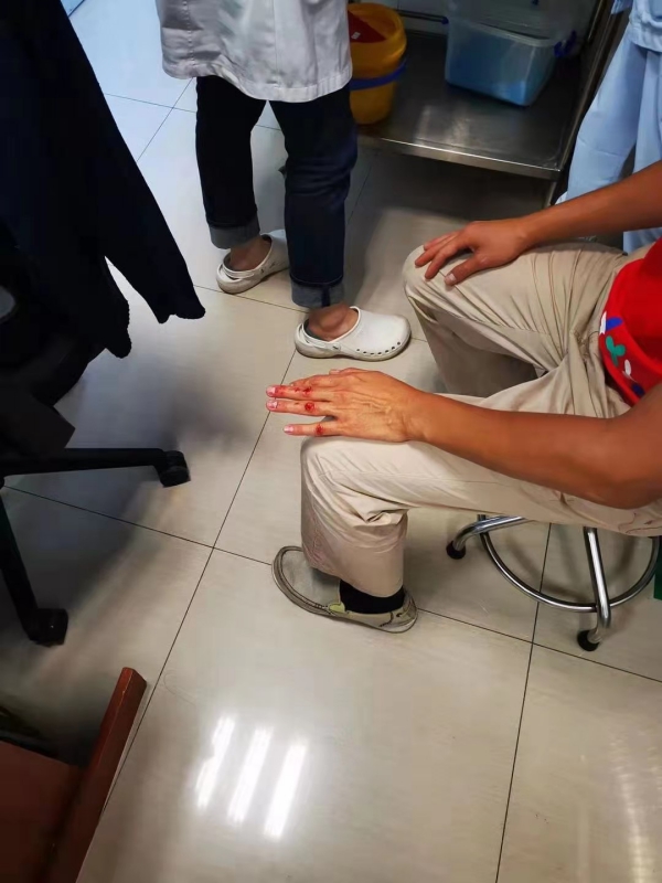 心中著急的梁國輝剛上路不久,突然間精神恍惚,車頭沒把穩(wěn),等反應(yīng)過來已經(jīng)趴在地上了。網(wǎng)格員王勇剛好路過,扶起梁國輝送到社康止血與包扎。社康醫(yī)生一邊處理一邊對(duì)他說:“傷口比較深,現(xiàn)在幫你止血,等一下必須去留醫(yī)部急診處理一下,牙齒也缺了兩塊,怎么傷得那么重呀?”“昨天加班熬夜了,沒睡好,給你添麻煩了?!绷簢x不好意思地說道,社康醫(yī)生笑著安撫他:“大家都是兄弟姐妹,我們昨天不是一起在繽紛時(shí)代加班驗(yàn)核酸…”原來社康醫(yī)生正是此前與自己一起在疫情防控工作的小伙伴之一,便安下心來接受治療。