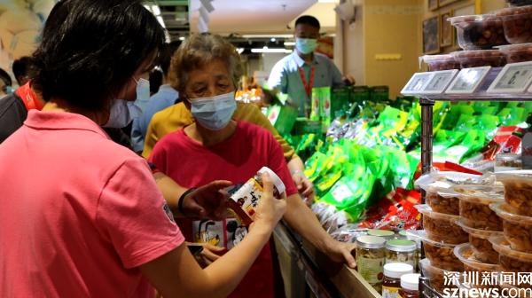 記者現(xiàn)場(chǎng)看到,在華潤(rùn)萬(wàn)家蓮塘店二樓,一位店員拿起一瓶來(lái)自廣西隆林的農(nóng)產(chǎn)品,向顧客熱情地介紹著?!皨?zhuān)矣X(jué)得這個(gè)不錯(cuò),顏色也不是那種很白的,看起來(lái)很放心。”顧客拿起一瓶百合干,和同行的母親討論了一下,就放進(jìn)了購(gòu)物籃內(nèi),身后不少顧客也拿起商品仔細(xì)打量,專(zhuān)柜上“羅湖區(qū)消費(fèi)幫扶專(zhuān)區(qū)”的字樣引人注目。