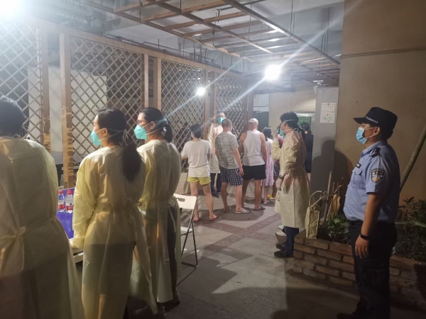 “我們已經(jīng)協(xié)調(diào)社康開(kāi)始發(fā)號(hào)了,不要急,請(qǐng)耐心等待?!惫S崗社康外,一名民警正頂著烈日揮汗如雨,耐心地給居民進(jìn)行解釋?zhuān)珙i處可見(jiàn)一道道汗?jié)n。