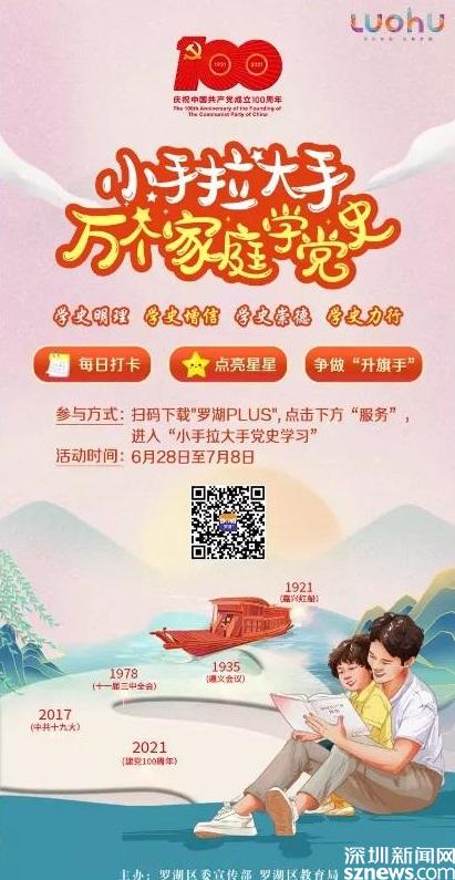 讀特客戶端·深圳新聞網(wǎng)2021年6月28日訊(記者 劉嘉敏 彭桂紅 通訊員 李瑩瑩)“七一”將至,為慶祝中國共產(chǎn)黨成立100周年,進一步推動羅湖區(qū)黨史學(xué)習(xí)教育走深走實,羅湖區(qū)委宣傳部聯(lián)合羅湖區(qū)教育局于6月28日在“羅湖Plus”客戶端正式推出“小手拉大手”萬個家庭學(xué)黨史活動。當(dāng)天,羅湖區(qū)委常委、宣傳部部長呂漫妮,羅湖區(qū)副區(qū)長、二級巡視員宋強等領(lǐng)導(dǎo)出席啟動儀式。