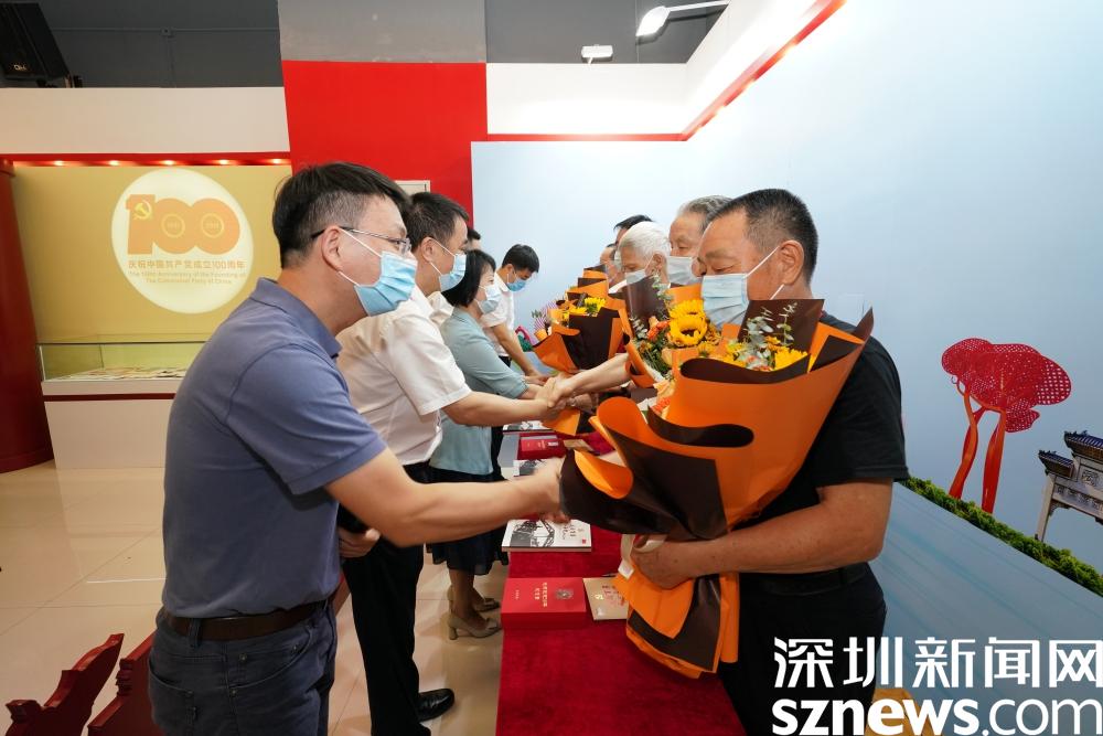 羅湖區(qū)委常委、宣傳部部長呂漫妮,羅湖區(qū)委組織部部務(wù)委員、人才工作局局長曹雙璽,羅湖區(qū)委宣傳部副部長、區(qū)文明辦主任張華嘉,深圳報業(yè)集團(tuán)副總經(jīng)理朱永峰,清水河街道黨工委書記魏剛,清水河街道黨工委副書記劉曉春等共同為展覽揭幕。部分老兵代表出席了本次活動, 并向嘉賓和學(xué)生代表簽名送書。開幕式后,羅湖區(qū)、清水河街道和深圳報業(yè)集團(tuán)領(lǐng)導(dǎo)為街道 " 光榮在黨 50 年 " 紀(jì)念章獲得者代表黨員頒發(fā)獎?wù)拢瑸榻值擂k " 兩優(yōu)一先 " 榮譽(yù)獲得者代表頒獎。