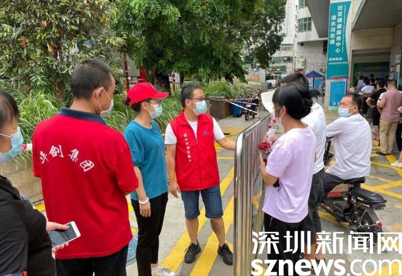 據(jù)了解,在本次疫情防控期間,羅湖區(qū)委下沉干部主要負(fù)責(zé)坭崗社區(qū)合圍各個(gè)卡口,他們每天忙于測(cè)溫、查驗(yàn)行程軌跡、查驗(yàn)健康碼、出入車輛管理、回應(yīng)居民咨詢,為坭崗社區(qū)筑造一條堅(jiān)實(shí)的防線。除此之外,來自深圳報(bào)業(yè)集團(tuán)的工作隊(duì)也堅(jiān)守在清水河街道社康。他們通過耐心地指引居民截取行程碼、健康碼,來維護(hù)現(xiàn)場(chǎng)秩序,引導(dǎo)居民接種疫苗。從早上7點(diǎn)到晚上10點(diǎn),甚至是12點(diǎn),他們都和社區(qū)工作者一樣,堅(jiān)守在疫情防控的第一道防線,為社區(qū)疫苗接種推進(jìn)工作提供了極大的幫助。這些下沉干部和工作隊(duì)也得到社康工作人員和周邊居民的點(diǎn)贊,清水河街道社康主任感嘆說:“下沉干部和工作隊(duì)的帥哥們真是給力??!”