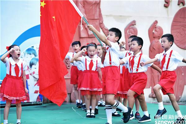蓮南小學(xué)的開學(xué)典禮上,二(8)班少先隊(duì)員在國旗下,用生動(dòng)活潑的歌舞,表達(dá)對(duì)新學(xué)期的期待,對(duì)黨的熱愛。