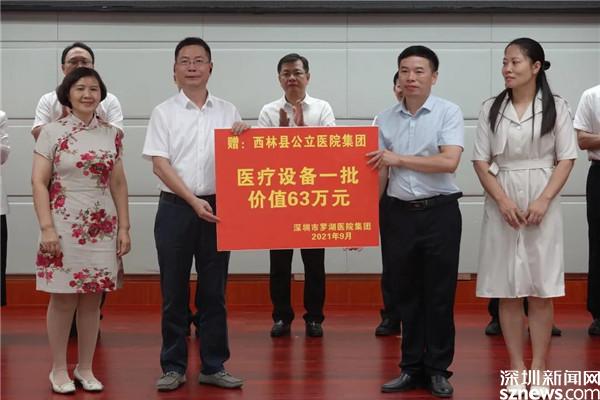 鄉(xiāng)村振興,關(guān)鍵在人,醫(yī)療和教育等基礎(chǔ)設(shè)施同樣起不可或缺的作用。此次考察中,羅湖區(qū)向西林縣人民醫(yī)院捐贈了一批醫(yī)療設(shè)備。據(jù)了解,自2017年對口幫扶西林縣以來,羅湖區(qū)共派出8批醫(yī)療隊、92人次駐點西林縣各醫(yī)療衛(wèi)生單位,累計捐贈價值約1000萬元的醫(yī)療儀器和設(shè)備,充分保障了地方百姓的醫(yī)療需求,推動了西林縣公立醫(yī)院集團的發(fā)展。