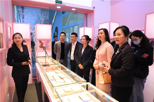 本次活動中,人大代表們還走進(jìn)商場品牌門店、網(wǎng)紅店與消費(fèi)者互動。代表們走進(jìn)周大生珠寶參股品牌大生美門店,被為大生美設(shè)計(jì)的星座極光大師系列作品所吸引目光。在翠綠門店,代表們對金箔制成的千里江山圖贊不絕口?!敖鸩谱鞒蓴?shù)米長的畫,這個工藝實(shí)在是高?!贝韨冊谝慌愿袊@道。
