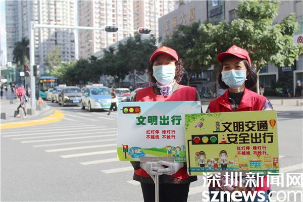 據(jù)了解,老圍社區(qū)黨委將創(chuàng)建文明城市納入常態(tài)化工作之中,黨群服務(wù)中心的社工迅速組建了創(chuàng)文小分隊(duì),長期堅(jiān)守在紅寶路和寶安南路的十字路口勸導(dǎo)交通。這是一條繁忙的十字路口,前有桂園小學(xué),后有盒馬超市,左邊是京基100寫字樓,右邊是地王大廈,周圍都是居民住宅小區(qū),每天車水馬龍,行人如織。尤其上班早高峰,路口更是熙來攘往川流不息。志愿者們守在路口,全神貫注,時(shí)刻留意那些準(zhǔn)備闖紅燈的騎行者,不走斑馬線的行人,勸導(dǎo)他們遵守交通規(guī)則,保障正常的交通秩序。