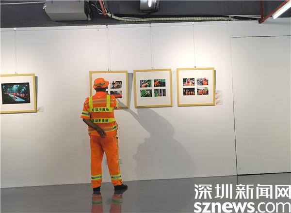 在羅湖美術館開展的第一天,王林泉就特意前去觀展,他是這次入展攝影類作品的作者之一,在與工作人員分享他攝影的作品《平凡的“戰(zhàn)疫”英雄》時還十分感慨:“這組圖是2020年2月份拍攝的,當時新冠疫情十分嚴峻,拍攝時我問其中一名環(huán)衛(wèi)工人怕不怕?他說不怕是假的,但這些活兒也必須有人做。令我印象十分深刻。”
