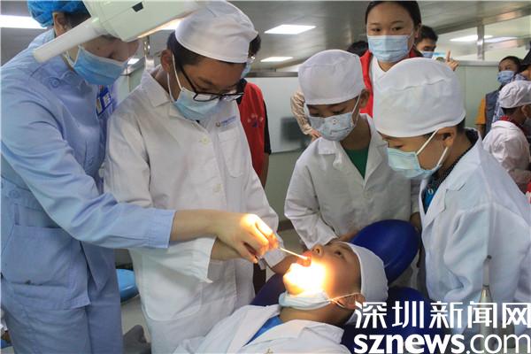 培訓(xùn)結(jié)束,小朋友們穿上白大褂,戴上醫(yī)生帽,變身小牙醫(yī),走進(jìn)診室,拿起棉簽,為“病人”檢查牙齒。10個(gè)小朋友分成5組,互為“病人”和“醫(yī)生”。小“病人”躺在診床上,張大嘴等著檢查。小“牙醫(yī)”在牙科醫(yī)生的指導(dǎo)下,仔細(xì)觀察“病人”的口腔,了解什么是健康的牙齒,什么是出現(xiàn)了問(wèn)題。陳信霏小朋友檢查完“病人”后,對(duì)哥哥說(shuō),“以后可要愛(ài)護(hù)牙齒了,每天早晚按時(shí)刷牙?!备绺缫颤c(diǎn)頭同意。