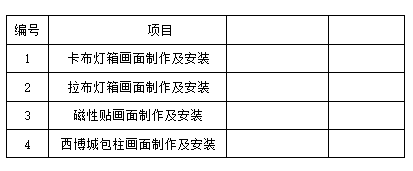 二、項(xiàng)目概況:本次大媒體廣告制作、安裝服務(wù)采購(gòu)項(xiàng)目進(jìn)行制作、安裝單位供應(yīng)商的招標(biāo),歡迎符合資格的單位參加投標(biāo)。采購(gòu)范圍見下表: