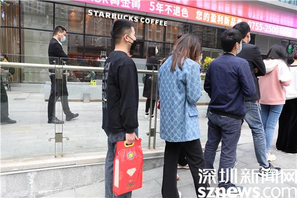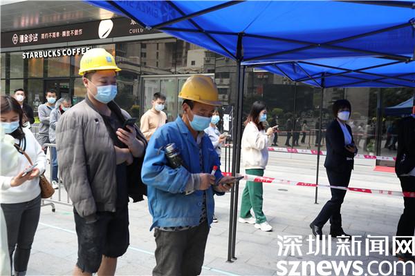 “請戴好口罩,保持一米距離,提前打開健康碼……”走進水貝萬山,周邊商場和店鋪均已關(guān)閉進行消殺,陸續(xù)有周邊市民在核酸檢測點有序排隊檢測。