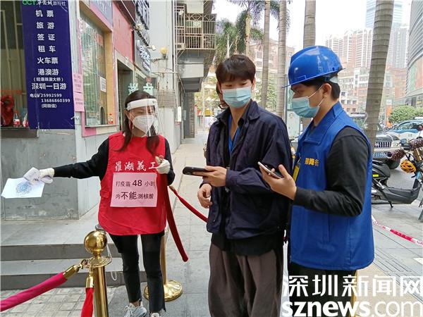 1月9日,羅湖區(qū)開始第二輪全員核酸檢測,桂園街道老圍社區(qū)在禧程酒店、人民銀行門口、老圍花園五樓設(shè)立了三個(gè)臨時(shí)檢測點(diǎn),社區(qū)工作人員和志愿者以及區(qū)里和街道的下沉人員身穿紅馬甲,在社區(qū)黨委的領(lǐng)導(dǎo)下,全力以赴,積極組織和引導(dǎo)市民快速有序地采樣離場。