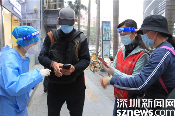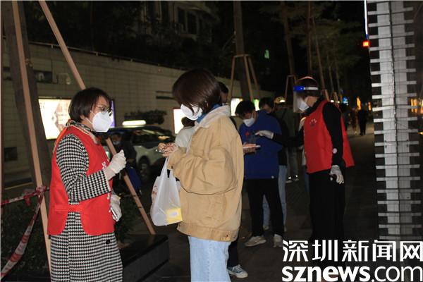 “楊妹,我來了,還帶來了一個(gè)人?!?3日晚,正在羅湖區(qū)桂園街道老圍社區(qū)禧程酒店核酸檢測點(diǎn)忙碌的社工楊女士,接到志愿者溫寶珍的電話。溫寶珍從“0107疫情”開始以來,每天都在核酸檢測點(diǎn)協(xié)助核酸檢測,這晚她把自己的兒媳婦吳永霞也帶來了?!捌牌艅倧钠渌鐓^(qū)的核酸檢測點(diǎn)做完義工回來,聽說老圍社區(qū)需要人,放下飯碗就來了。婆婆這么大年紀(jì)了還沖在前面,我做兒媳婦的,怎么也要向婆婆學(xué)習(xí)啊?!眳怯老紝ι绻ふf?!皯?yīng)該的應(yīng)該的,疫情當(dāng)前,每個(gè)人都有義務(wù)出來與病毒作戰(zhàn),光是靠社區(qū)工作者不行,他們太累了?!睖貙氄溥呎f邊幫兒媳穿好義工服,把粵核酸的二維碼交給兒媳,并教兒媳如何在手機(jī)上查驗(yàn)。