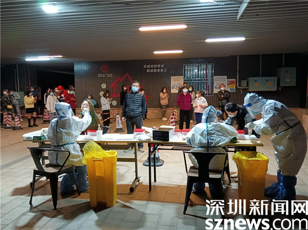 這天,老圍社區(qū)某棟樓全員檢測,社區(qū)緊急設立了臨時檢測點,社區(qū)黨委書記許少瓊忙前忙后指揮布置現(xiàn)場,調(diào)度管理處通知住戶下樓采樣,所有社區(qū)工作人員緊急行動起來,醫(yī)務人員也很快就位,居民積極配合,采樣工作有序進行。