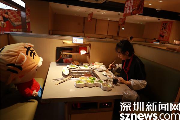 冬季是火鍋消費(fèi)的旺季,在用餐高峰期,位于深圳市羅湖區(qū)這家連鎖火鍋店里,可見門口顯眼處貼著“半份菜 滿份愛”的海報(bào),店內(nèi)還有光盤行動(dòng)等標(biāo)語(yǔ),還有一名光盤行動(dòng)倡導(dǎo)員在餐廳內(nèi)不時(shí)給消費(fèi)者溫馨提示,倡導(dǎo)顧客適量點(diǎn)餐。