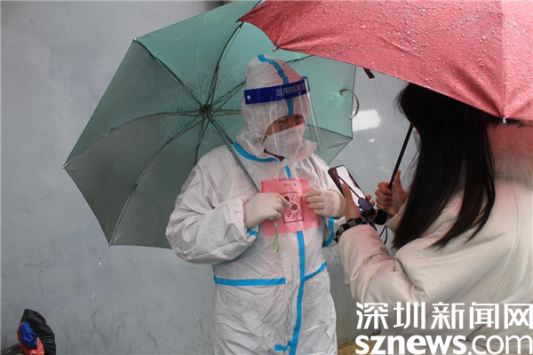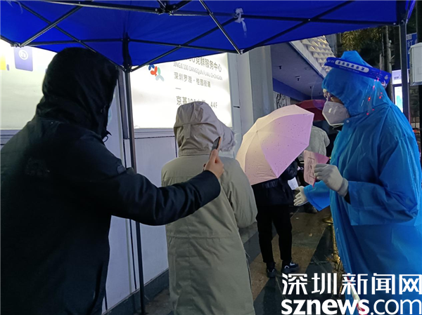 讀特客戶端·深圳新聞網(wǎng)2022年2月24日訊(記者 劉嘉敏 通訊員 楊紀歐)雖然這幾天的冷風(fēng)冷雨一直不停,氣氛低至6度,但深圳市羅湖區(qū)桂園街道老圍社區(qū)設(shè)在各處的核酸檢測點一直在有序進行著。人們打著雨傘排隊,社區(qū)工作人員和志愿者高效地引導(dǎo),讓等候的人快速地采樣,協(xié)助不會操作的人出示粵核酸碼。工作人員的手腳都凍僵了,但沒有人退縮,用自己的“凍”起來,守護著深圳人的綠碼,捍衛(wèi)著社區(qū)的平安。